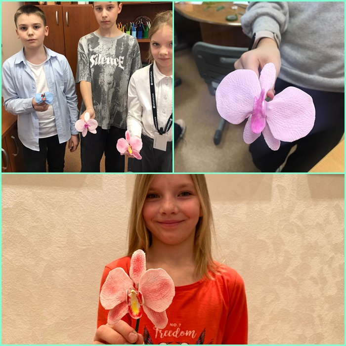 Ребята из студии «Арт Град. Юный скульптор» (педагог Юлия Лапшинова) уже создавали розы в этой технике. А в этом году их ждало задание посложнее – сделать цветок орхидеи. Каждый лепесток нужно было слепить и собрать отдельно.