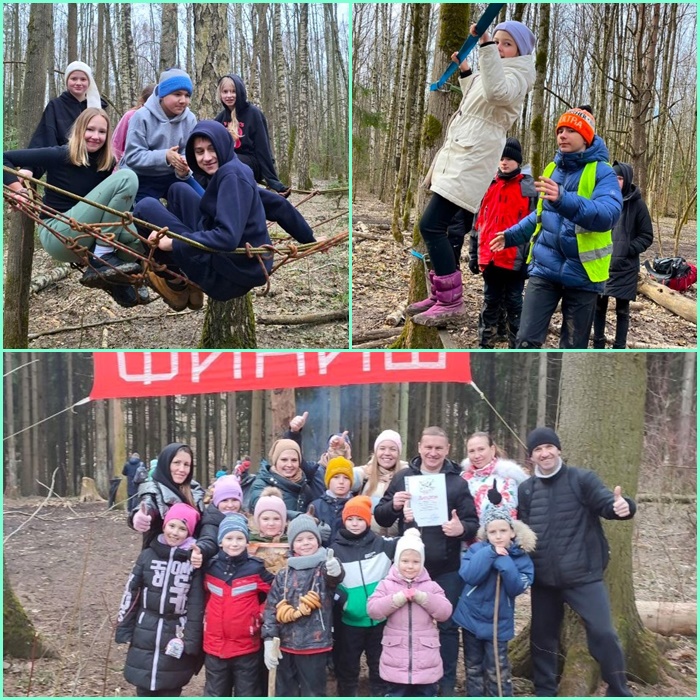 Команды выполняли задания на 10 контрольных точках: переправлялись по параллельным веревкам с помощью маятниковых перил, вязали групповой гамак, бросали «снежки» в кольцо, прыгали в мешках, перелезали через сеточное заграждение, работали в ограниченном пространстве, добывая буквы алфавита для составления слов на туристскую тематику и многое другое.