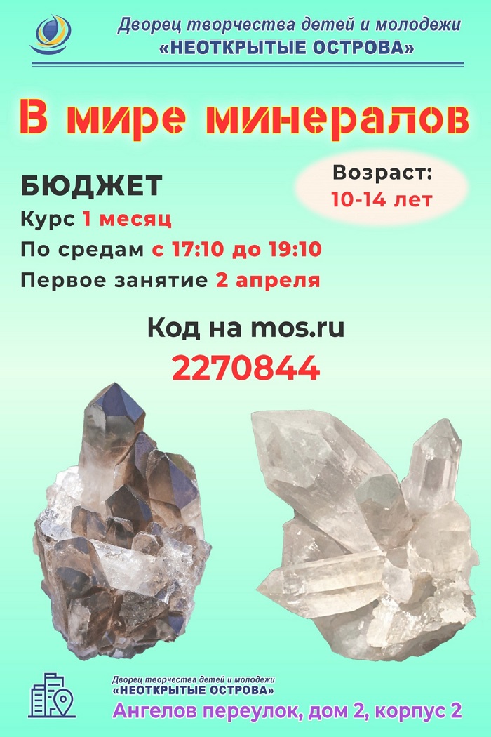 Еще больше интересных фактов можно узнать на занятии в студии "В мире минералов".