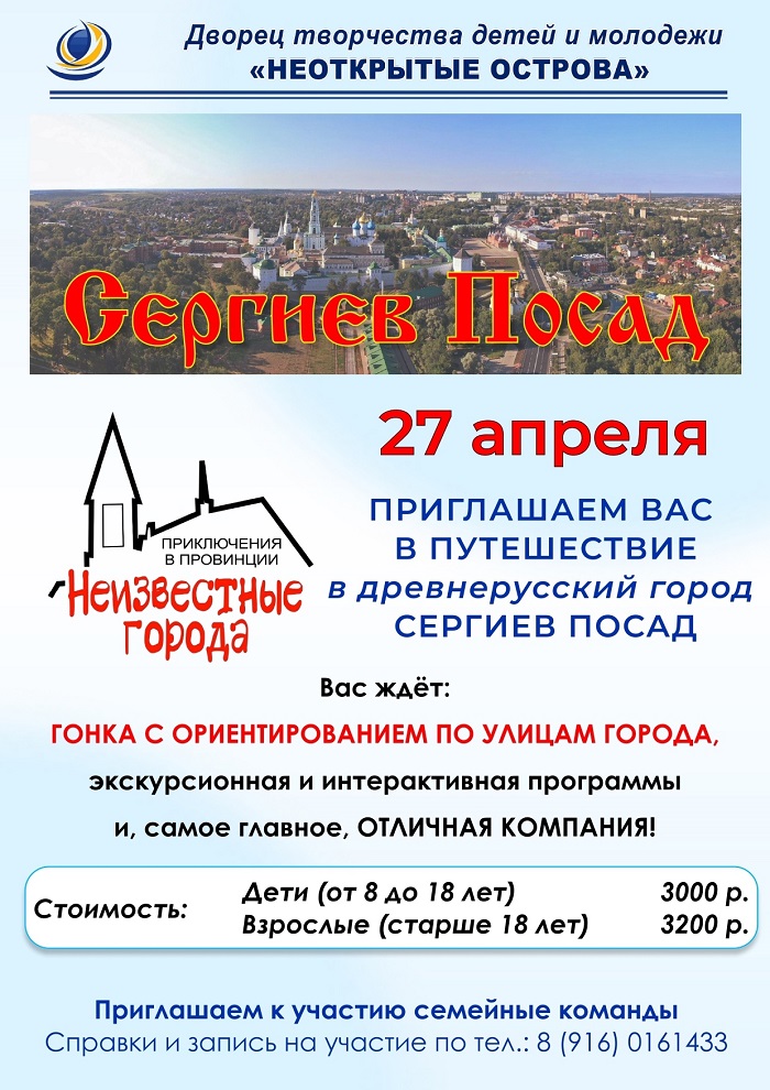 Приглашаем детей и родителей в увлекательное путешествие в древнерусский город Сергиев Посад.