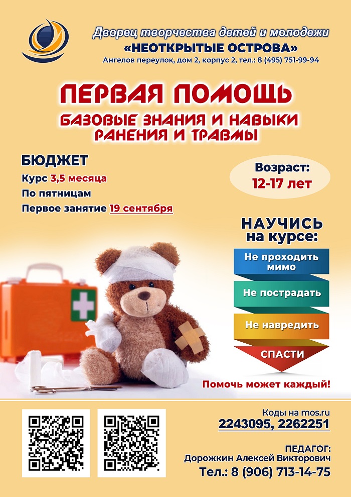 Всем этим и другим полезным навыкам обучаем ребят 12-17 лет на занятиях «Первая помощь. Базовые знания и навыки. Ранения и травмы».