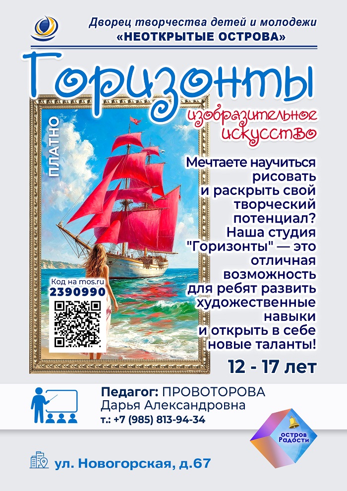 На ул. Новогорская, 67 идет прием ребят 12-17 лет в студию изобразительного искусства «Горизонты».