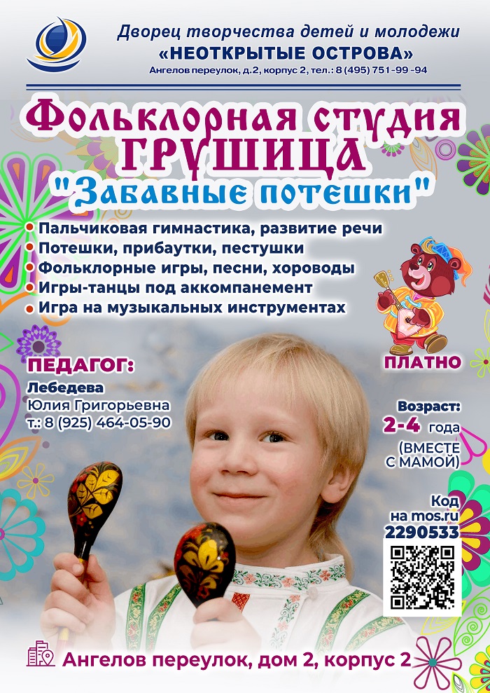 Занятия проводятся на платной основе по адресу: Ангелов пер., 2, корп. 2. Код для записи на mos.ru: 2290533.
