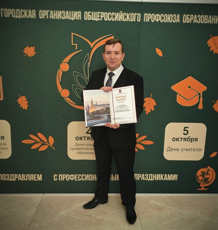 В рамках церемонии награждения педагогу нашего Дворца, председателю Совета молодых педагогов по МСМП №7, победителю Х Всероссийского профессионального конкурса «Арктур» Ренату Гусманову вручена Почётная грамота Департамента образования и науки города Москвы «За плодотворную работу в Профсоюзе, личный вклад в развитие социального партнёрства и укрепление профессионального сообщества»!
